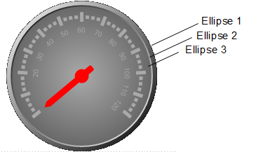 The Border property of all FaceShapes is nice and simple. We can create a more professional-looking beveled edge to our gauge by adding a couple shapes on top of one another and using gradients for a lighting effect. For this example we will have a total of three Ellipses in our FaceShapes collection.