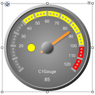 5. To position the C1GaugeSingleLabel, set its Angle property to 180 and Location to 80. This will position the label centered below our caption. You can increase the FontSize to 12.