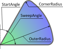 [Settings for the above shape: StartAngle = 30, SweepAngle = 60, CenterRadius = 0, CornerRadius = 10, InnerRadius = 45, OuterRadius = 100]