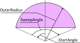 [Settings for the above shape: StartAngle = -115, SweepAngle = 230, OuterRadius = 100, InnerRadius = 110]