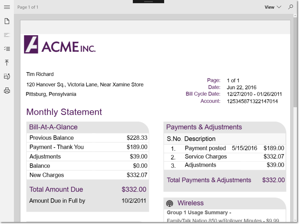 Try ' load from resource stream Using stream As Stream = asm.GetManifestResourceStream("BindingApp.Resources.TelephoneBillReport.flxr") rpt.Load(stream, "TelephoneBillReport") End Using Catch ex As Exception Dim md As New MessageDialog(String.Format("Failed to Load Report", rpt.ReportName, ex.Message), "Error") Await md.ShowAsync() Return End Try Flxviewer.DocumentSource = rpt